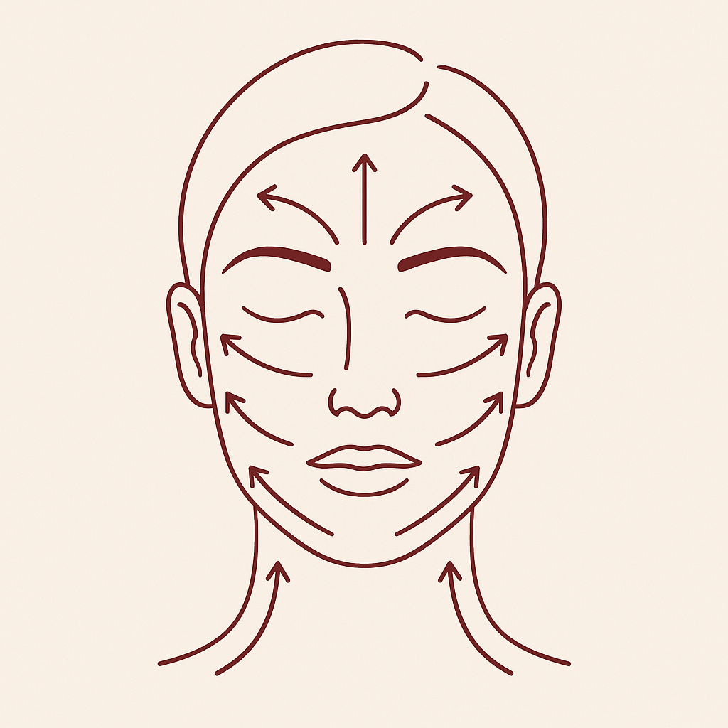 Finish with gentle downward sweeps along the neck to aid lymphatic flow.