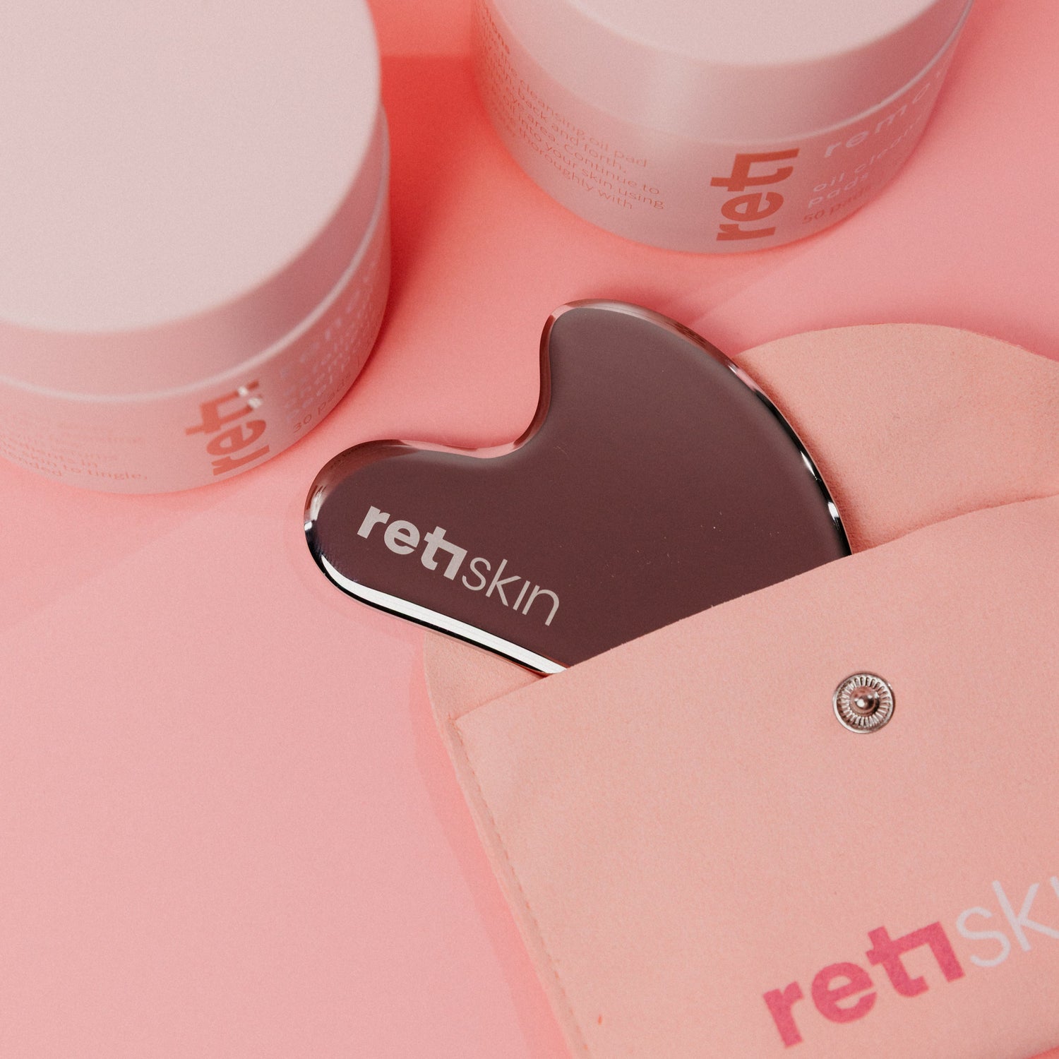 Sculpt: Use in the mornings, wipe a Cleansing Oil PAd across the face (as your glide oil) and gently use the Reti Gua Sha to lift and define the face.